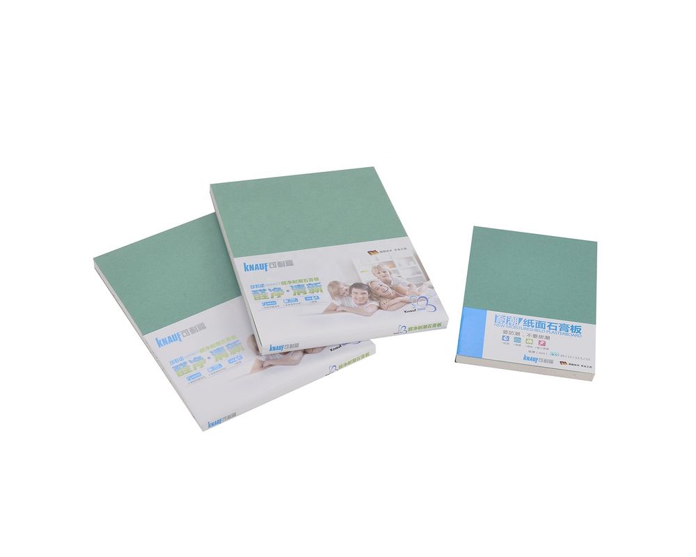 De waterbestendige die gipsraad, ook als M. gipsraad of groene raad wordt bekend, is een type van gipsraad dat speciaal wordt ontworpen om zich tegen vochtigheid en water te verzetten. Het wordt algemeen gebruikt op gebieden met hoge vochtigheid zoals badkamerss, keukens, en wasserijruimten. Hier zijn sommige eigenschappen van raad van het vochtigheids de bestand gips:
